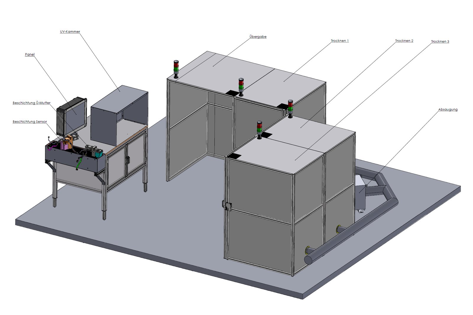 Von der ersten Handskizze bis zur fertigen Gesamtanlage (Beölungs- und Markierungsstation, UV-Licht-Prüfkammer, inklusive vier Trocknungskammern) wurden nur acht Wochen benötigt.